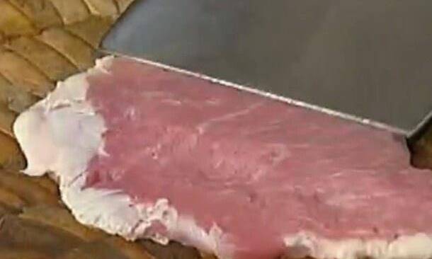 1、 將豬裡改刀成大片,脊用松肉錘或菜刀拍松,加入少許鹽、黑胡椒、糖、料酒抓揉片刻;