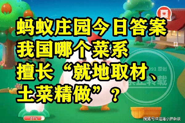 螞蟻莊園:我國哪個菜系擅長“就地取材、土菜精做”?猜一猜:名犬“哈士奇”其實是一種?這些都是螞蟻莊園的題目,下面就一起來看看,哪個菜系擅長就地取材土菜精做呢?