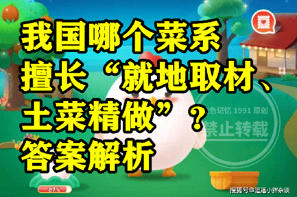 以上就是螞蟻莊園題目:我國哪個菜系擅長“就地取材、土菜精做”?的答案解析,希望大傢會喜歡。