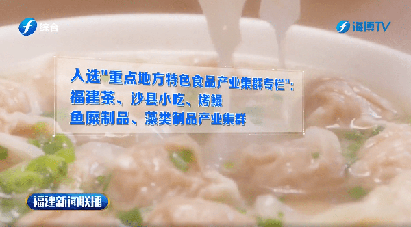 福建茶、沙縣小吃、烤鰻、魚糜制品、藻類制品產業集群被列入“重點地方特色食品產業集群專欄”。