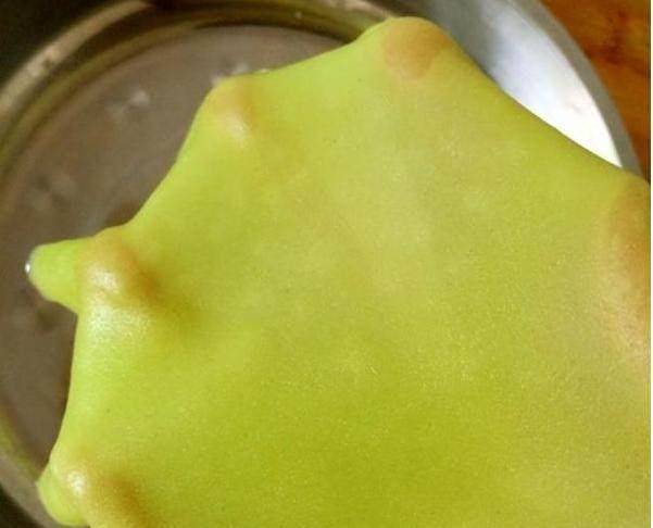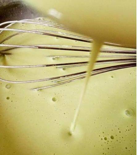 總體加水量就是要保證制作出的面糊用勺子舀起來倒出時能連成一條線並且不斷開,面糊裡不能有面疙瘩存在,一定要攪拌均勻