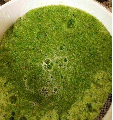 加350克的涼開水打汁,50克留作備用,總體出來的汁達到400克為好