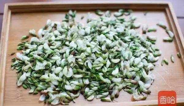 1.槐花摘掉枝幹和葉子,淘洗幹凈。