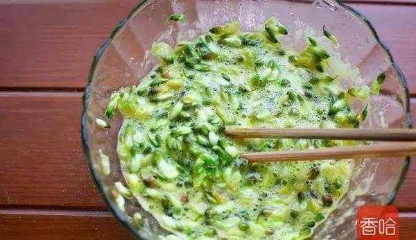 2.洗幹凈的槐花裡,加入雞蛋(雞蛋的量以能包裹住槐花為準)