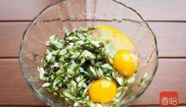 對於牙齒沒長全的小寶寶,可以把槐花剁碎之後再加雞蛋。