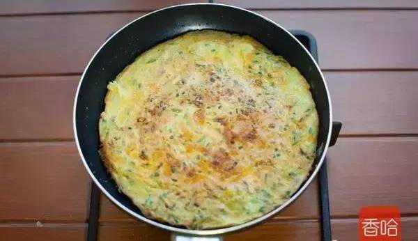 8.小寶寶的話,可以加入少量開水,蓋上蓋子燜一會,這樣的蛋餅會更軟嫩。