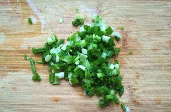 小香蔥清洗幹凈,切成香蔥圈。沒有小香蔥也可以放點切碎的大蔥。