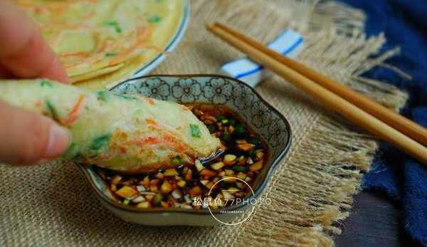 再蘸點蒜汁,美味極瞭!孩子一頓三張都不夠吃!蒜汁調法:2瓣大蒜剁碎放小碗內,加2勺生抽、2勺香醋、幾滴香油,攪拌均勻就好瞭。