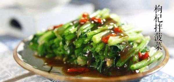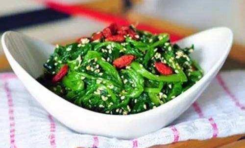食材:菠菜2把,芝麻適量,枸杞適量,醋, 辣椒油,鹽,蔥薑蒜