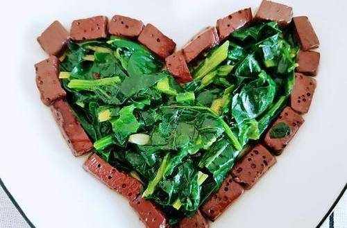食材:菠菜1把,豬血1塊,蔥薑蒜,鹽,味極鮮,