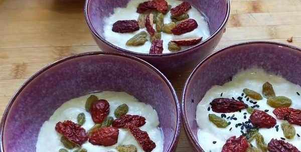 紅棗準備幾個碗。醒好的大米裡面快速輕輕的攪動一下,排一下空氣,碗裡驚暗,不要沾水,刷一層油,二次醒發10分鐘以後中火蒸15分鐘。放涼以後,你用手輕輕地在這給他掰一下。像這個季節的話可以適當地多吃一些這樣的面食。氣候比較幹燥,梨可以潤肺清掃,再加上大米的清甜,這樣做真的是特別的好吃,唯一的不足就是做少瞭。