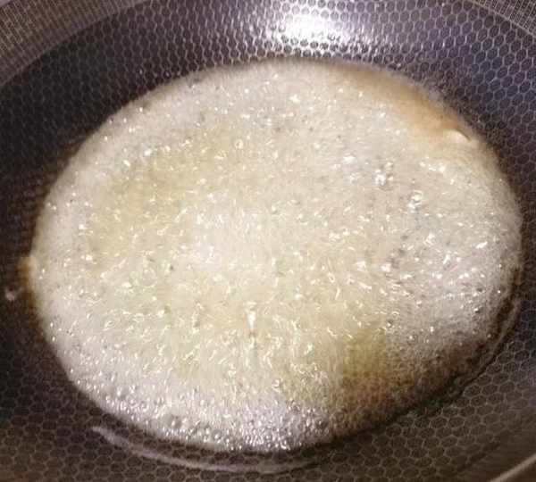 第9步、至糖熬至有小泡泡時,能輕微拉絲。