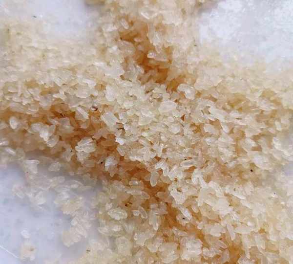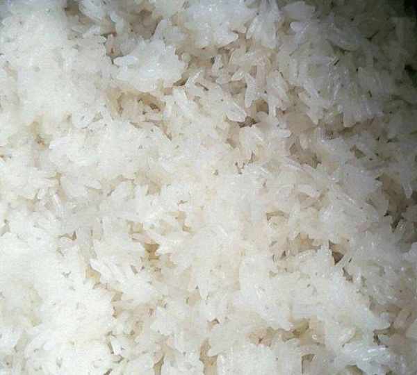 第3步、隔水蒸熟,加少許豬油,拌開,放在太陽下曬3-5天,至米完全曬幹。