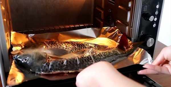 2、醃好的魚肉放在墊有錫紙的烤盤上,在魚身上刷一層食用油,放進預熱好的烤箱裡200度烤半個小時左右。