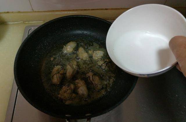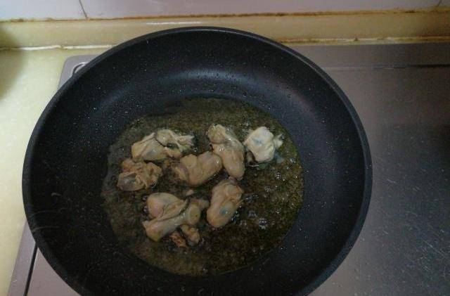 2、不粘鍋中放入適量調和油,油熱後將海蠣子肉放入鍋中;