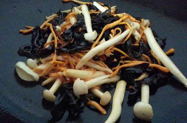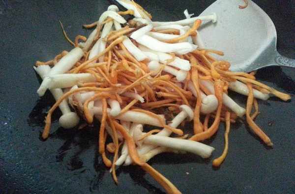 經常食用菌類比起天天拿著高價的營養藥片要好的多,今天食譜所需的材料有:蟲草花120克、白玉菇120克、泡發黑木耳120克、蒜頭2個、薑3片所需調料:鹽少許、蠔油1匙、水淀粉2匙