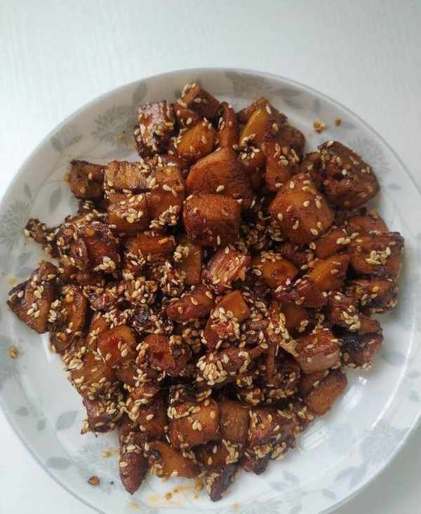 雞胸還可以這樣吃~麻辣香的做法鍋燒幹,燒熱下白芝麻炒香,全程最小火,不停翻炒。芝麻晾涼備用雞胸肉切大丁、杏鮑菇切大丁,老薑切片倒入120克菜籽油,燒熱下薑片爆香。(油稍微要多一些,否則容易粘鍋)鍋內下入雞胸肉丁和杏鮑菇肉丁中火翻炒,3分鐘左右會出很多水,不用擔心,繼續炒翻炒大約10分鐘後,水分會收幹,雞肉和杏鮑菇成微微金黃色依次下生抽、老抽、耗油、十三香、白糖翻炒均勻,如果覺得有一點粘鍋倒入一點料酒就行炒到所有調料充分均勻、融合後把雞肉杏鮑菇刨到旁邊露出鍋中間的油在油中間加入辣椒兩勺,用油炒辣椒面,炒到辣椒出香味把辣椒和雞肉杏鮑菇炒均勻,覺得粘鍋再加入一點點料酒。關小火加入十三香、炒熟的芝麻、翻炒均勻。關火,放入適量藤椒油翻炒均勻,加入一丟丟味精(也可不加味精)裝盤,放到完全冷卻,隔夜更好吃