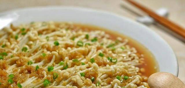 蒜蓉蒸金針菇的做法金針菇切掉老根洗幹凈,淋幹水份後直接擺放在盤子中~蒜蓉醬:剝蒜,多剝點,一頭吧,我這是一包金針菇配一頭蒜~剝好後切成蒜末,別太碎,粗著點,有口感~更香炒鍋加入同等蒜末的油,燒熱後關火,下入蒜末,炒均勻,用是鍋子的餘溫爆香蒜末,避免過度加熱~然後直接在鍋裡調味,加鹽和糖,以咸為主,糖隻加一點點提鮮~蒜蓉醬就完成瞭~將蒜蓉醬直接淋在洗好的金針菇上蒸6-8分鐘後取出,金針菇會自然蒸出水份,蒸出的汁水很甜,不要浪費~將汁水倒出,在汁水中加入鮮味生抽和糖,麻油,調好味道,不必太咸,再倒回金針菇盤子裡面,最後撒上蔥花,就完成瞭~