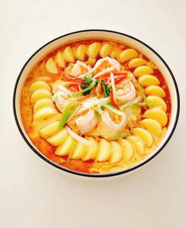 用料雞蛋 2個日本豆腐 4條大蝦 6個大蔥 1根生薑 2片紅椒 1個蒸魚豉油 2勺鹽 1克