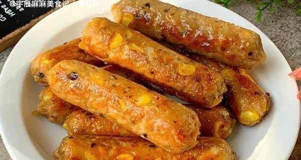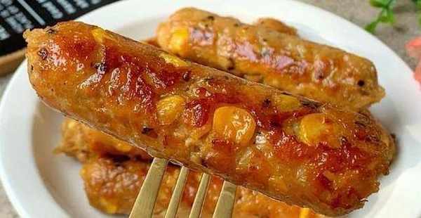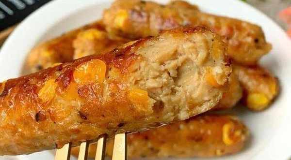 美味的雞胸肉腸完成,咬一口裡面還有甜甜的玉米粒喲!