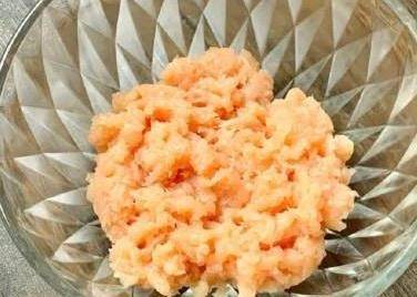 第二步:雞胸肉清洗幹凈切碎,胡蘿卜洗凈切碎末,香菇清洗幹凈切碎末
