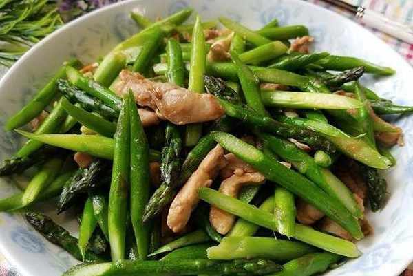 蘆筍1紮、醃雞腿肉適量、蒜3瓣、鹽1/2茶匙、油1大匙。