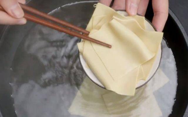 第一步:首先把準備好的豆皮橫豎兩刀切成10cm×10cm的小方片,然後放入250ml的沸水鍋中,大概需要焯水三分鐘左右,完全煮熟之後撈出控幹。相對於這步來說,一般京醬肉絲吃法大多用烙制的春卷皮,筆者今天的做法隻是一個小小的嘗試,如果你感覺春卷皮更加適合美食原本的口味,也可以按照自己的喜好選擇。