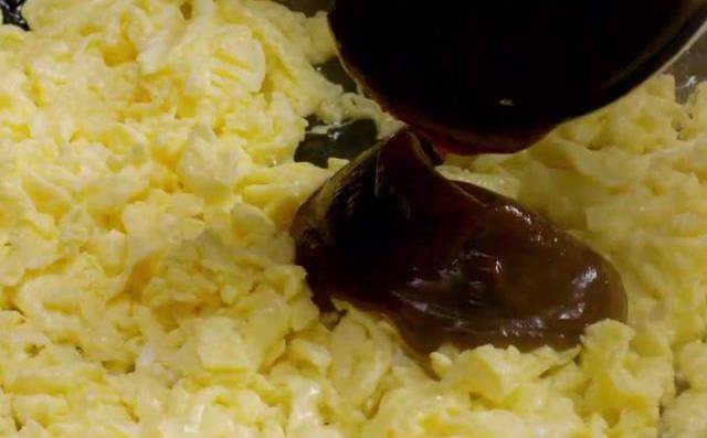 第三步:最後把準備好的甜面醬倒入鍋中,適當翻炒一分半鐘左右就可以出鍋品嘗瞭。