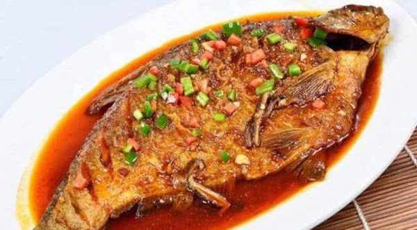 3,紅燒鯽魚。用到的材料:鯽魚、生薑、蒜米、白糖、生抽、豆瓣醬、老抽、料酒,幹辣椒,蔥,生粉。