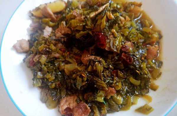 酸菜是鄰居傢自己做的,今天早上給瞭一些我們,中午便用來與肉片炒瞭一碗下飯菜,吃起來不會很酸,又有著酸菜特有的香味,吃起來很清脆,放瞭少許辣椒幹一起炒,有著淡淡的辣味,好啊秘又下飯。