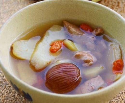 淮杞蜜棗煲瘦肉:瘦肉洗凈、切成短粗條狀,鍋中燒水,水開後放入瘦肉,焯燙至瘦肉變色,撈出瘦肉,用清水沖去浮沫,薑去皮、切片,蔥切段,將瘦肉放入湯煲,加入洗凈的淮山片和蜜棗,加入蔥段和薑片,加入足量水(800ml左右),中火滾開後,轉小火煲二個半小時左右,放入枸杞,繼續煲半小時,出鍋前加少許鹽調味,美味又營養。
