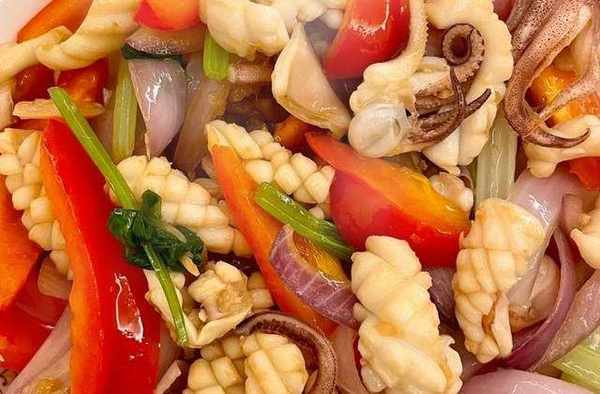 魷魚,洋蔥,紅椒,芹菜,蔥薑蒜末,薑片。