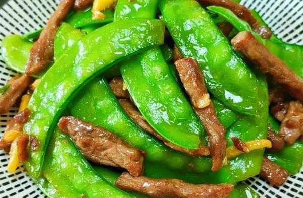 3.再倒入荷蘭豆翻炒,加入適量食鹽和蠔油調味,炒至荷蘭豆斷生,再倒入牛肉大火翻炒收汁,即可出鍋,營養美味,開胃健脾。