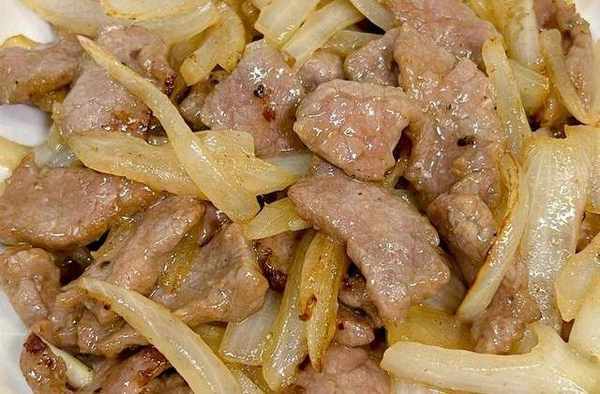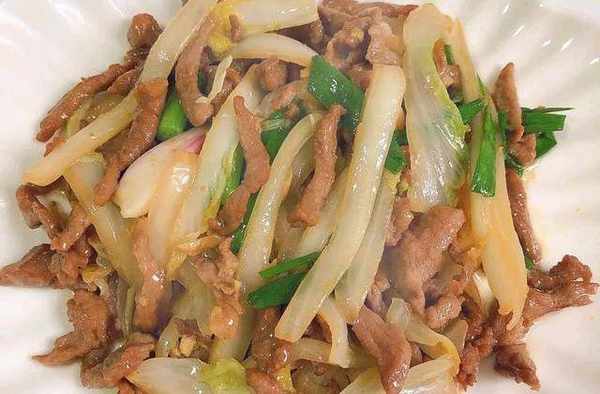 3.然後倒入洋蔥翻炒,加入適量食鹽調味,炒至洋蔥變軟,再倒入牛肉,一起翻炒入味即可出鍋,入味好吃,下飯美味。