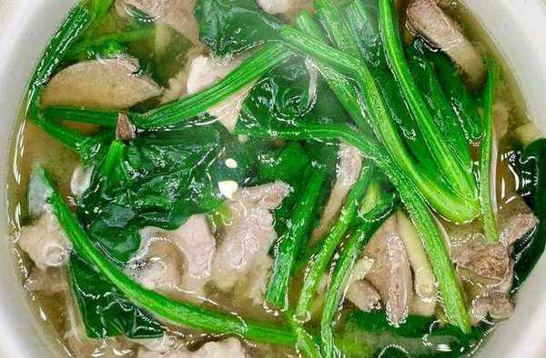 3.然後放入菠菜一起煮,菠菜熟透,再加入適量雞精提鮮,即可出鍋,補鐵補鈣,長身體。