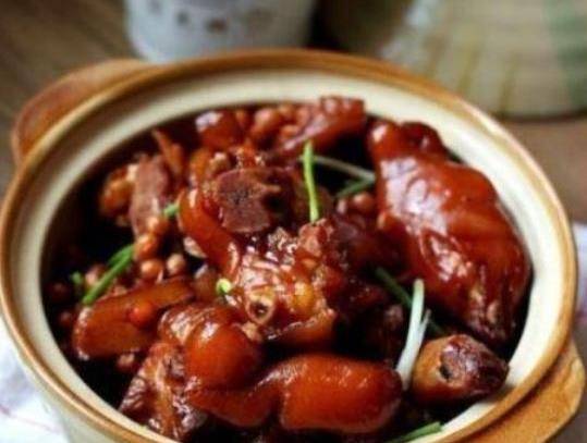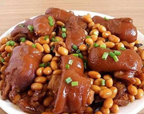 食材:幹黃豆300克豬蹄700克幹辣椒1小把花椒1小撮香葉2片八角1個老薑1小塊小茴香1小撮桂皮1小塊紅糖2小勺醬油3勺