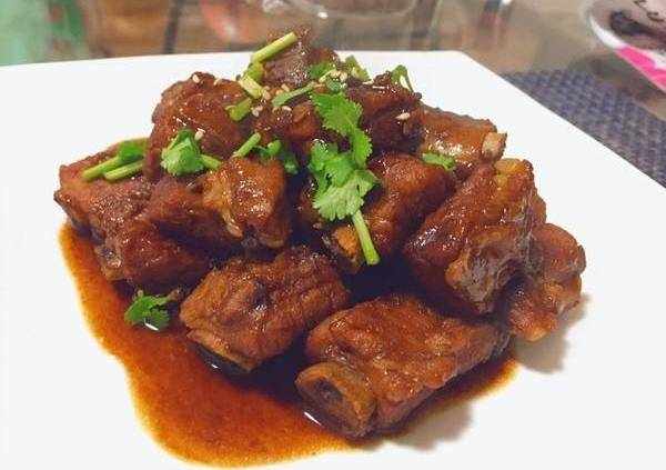 紅燒排骨:排骨斬小塊,沖洗幹凈,先放鍋裡氽一遍水,為瞭去除血水,鍋裡熱油,爆香蔥薑蒜;倒入排骨,煸炒;至排骨兩面焦黃,倒入生抽、老抽、料酒翻炒上色後,再倒入熱開水,大概與排骨持平;加鍋蓋,大火燒開水後轉中小火繼續燒;最後至湯汁剩1/4多點,調入一點鹽和白糖,雞精,轉大火收汁,即可!