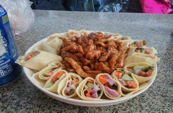 京醬肉絲:豬裡脊肉切絲,加入一個蛋清,兩湯匙淀粉,兩湯匙料酒,少許鹽和白胡椒粉研制一下。小蔥和香菜摘洗幹凈,胡蘿卜去細絲。取一張幹豆腐,在一端擺好小蔥、香菜和胡蘿卜絲,成圓卷,切好擺盤子,甜面醬、一湯匙白糖、一湯匙生抽、一湯匙老抽、一湯匙料酒兌到一起,再加入兩湯匙清水攪勻,加熱平底鍋,把醃制好的肉絲倒進去,肉絲八成熟,另起炒鍋少量油加熱,爆香蔥薑蒜末,倒入肉絲,加入調好的醬汁翻炒均勻即可!