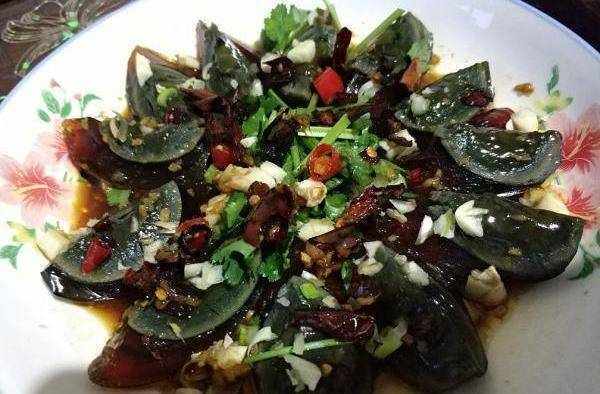 薑汁松花蛋:松花蛋剝去外皮,刀兩面抹上少許香油,將松花蛋切成四瓣,裝盤,薑切細末,鍋內滴入少許油,燒至六成熟,火調至最小,鍋中加入薑末、辣椒面,用鏟小翻炒,鍋內加醬油、料酒、些許醋、雞精,一小勺白開水,與薑末、辣椒面拌勻,最後放入小蔥,出鍋將汁澆在松花蛋上即可!