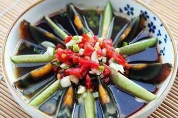 原料:海蜇皮300克、醋1勺、生抽1勺、蒜泥、芥末油1小勺