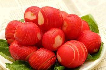 原料:櫻桃小蘿卜500克、鹽、白糖、白醋