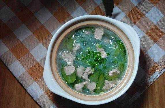 盛出,撒上蔥花,簡單清爽的黃瓜肉片湯就做好瞭,個人建議,加點粉絲會更好吃,真的。
