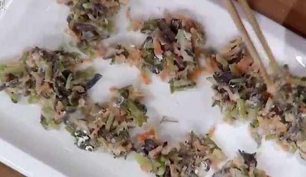 食材準備:龍利魚、香芹、胡蘿卜、香菇、木耳、蔥、辣椒面、鹽、味精、料酒、香油、面粉、糯米粉等;
