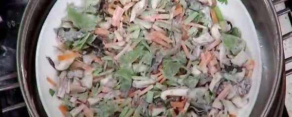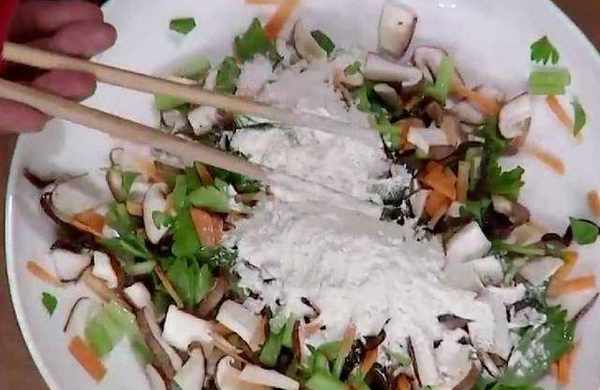 3、各類蔬菜加鹽醃漬入味時,會殺出蔬菜的水分,因此撒上面粉再次拌勻,面粉能鎖住食材的水分;