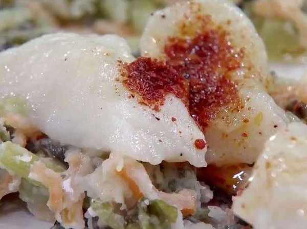 4、龍利魚中撒入糯米粉,能使成品魚肉的口感更加富有彈性並且不易破碎;