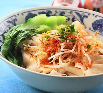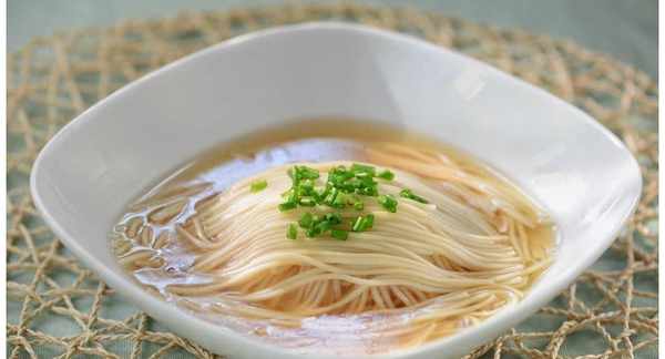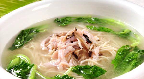 6.面熟後過涼水,裝盤,向盤中澆入煮好的湯和食材,