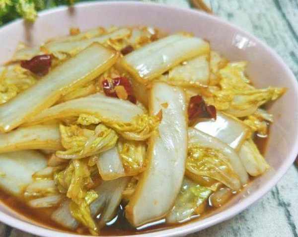 酸辣白菜:1.白菜剝掉外殼,就不用洗瞭,剝去外殼白菜就很幹凈,不洗的白菜炒出來沒有什麼水分這樣比較好吃一些。2.把白菜切成條或者片都行,把蒜剝皮之後拍一下就行,再來點幹辣椒切好。3.鍋裡面放油燒熱之後下入白菜快速的翻炒,然後放入蒜幹辣椒跟鹽繼續翻炒到大白菜斷生之後放入醋跟雞精翻炒均勻就可以乘出來瞭。(白菜這樣做確實很好吃,酸酸辣辣的味道,很下飯的一道菜呢)。