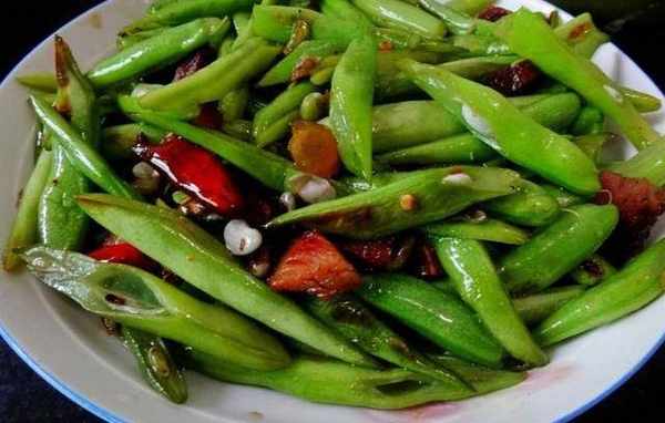 四季豆炒臘肉:1.先把四季豆去經洗幹凈後切成短,幹辣椒薑蒜切好備用,然後把臘肉先用溫水洗幹凈,再放入鍋裡面加入水煮開之後再洗幹凈切片。2.鍋裡面放油燒熱,放入薑沫爆出香味,再放入臘肉煸炒到熟之後放入蒜片幹辣椒加入料酒翻炒均勻,最後放入四季豆來回的翻炒到四季豆完全熟加入雞精就做好瞭。(四季豆一定要炒熟,沒有炒熟的四季豆人吃瞭容易中毒,也可以提前把四季豆綽水再炒)。