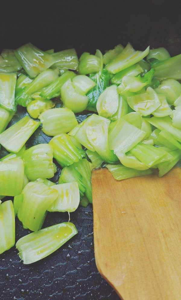 1:小青菜的下半部分,不像葉子那麼容易熟透,所以一定要爆炒幾分鐘。