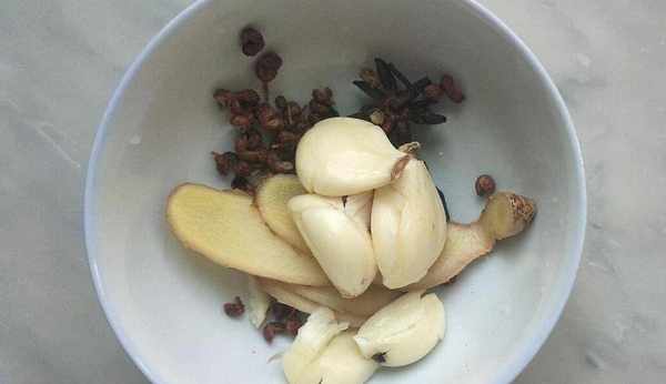 首先,我們先準備配料,配料有大蒜,生薑片,花椒和八角